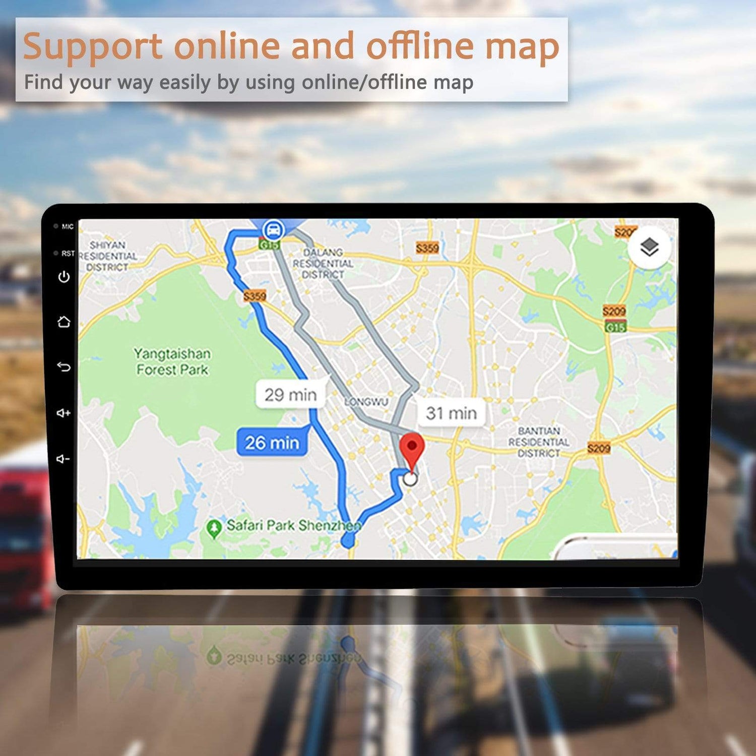 Binize 10.1 Inch Android 9.1 Double Din Stereo with Bluetooth/FM Radio/GPS Navigation,Support Reversing Image Input and Steering Wheel Control,Both Android and Iphones Mirrorlink,Bluetooth
