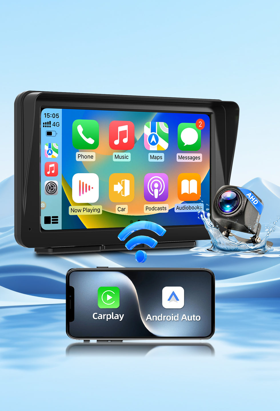 • 🚗 Wireless CarPlay & Android Auto – Hands-free calls & music.