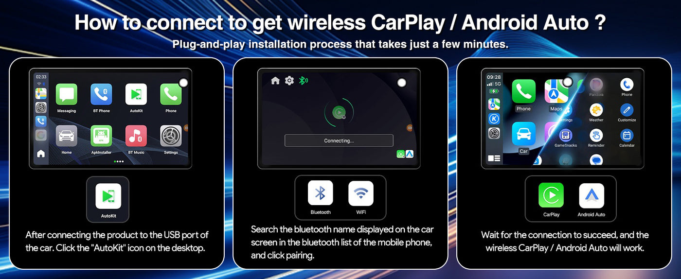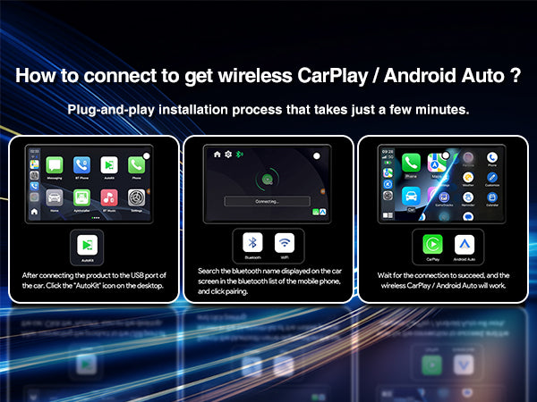 For Cars with OEM Wired CarPlay: The Binize CarPlay AI Box is designed to enhance the capabilities of your car's existing infotainment system by providing wireless connectivity. With its seamless integration and easy installation, this Android Auto AI Box allows you to enjoy hands-free calling, messaging, music streaming, and more. Android Auto AI Box Streaming Device is designed specifically for cars that have OEM Wired CarPlay. Plug-and-play installation process that takes just a few minutes. - For Cars with OEM Wired Android Auto: Supports vehicles with wired Android Auto on the original vehicle, which can be used on both interfaces. The factory products are used by default on cars with wired CarPlay function. If used on cars with wired Android Auto, switch to Android Auto to use it.