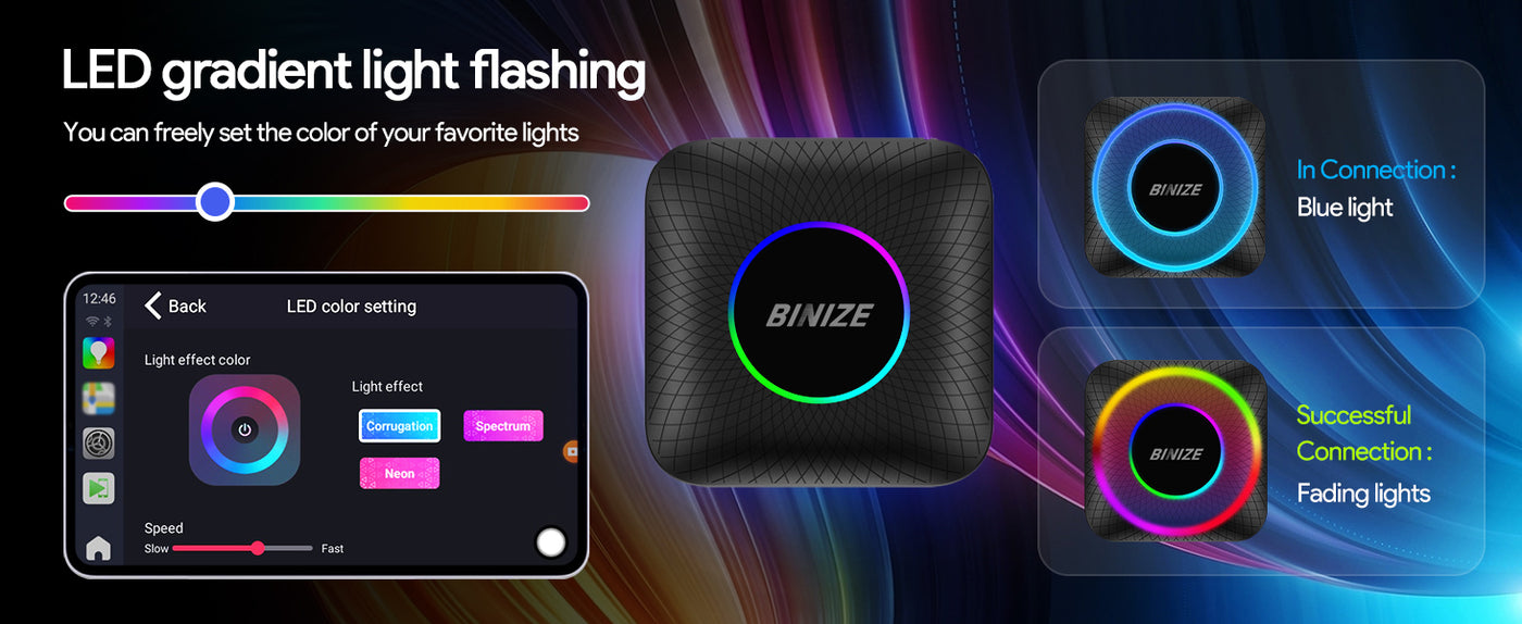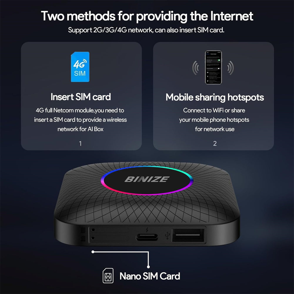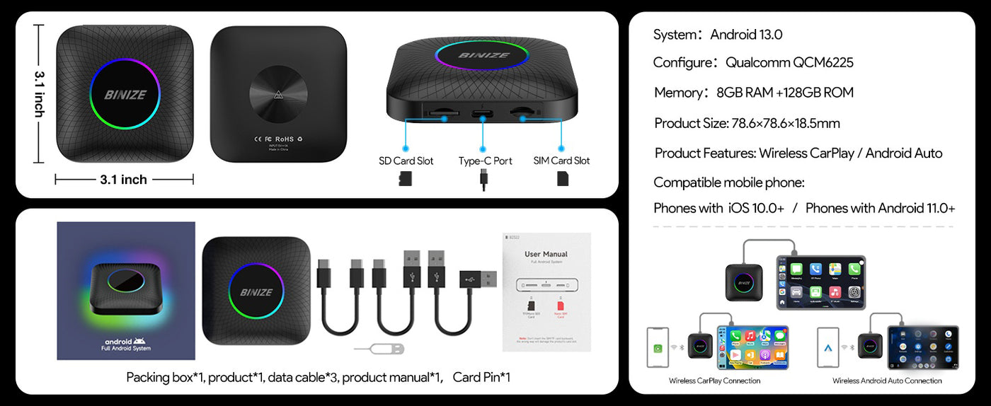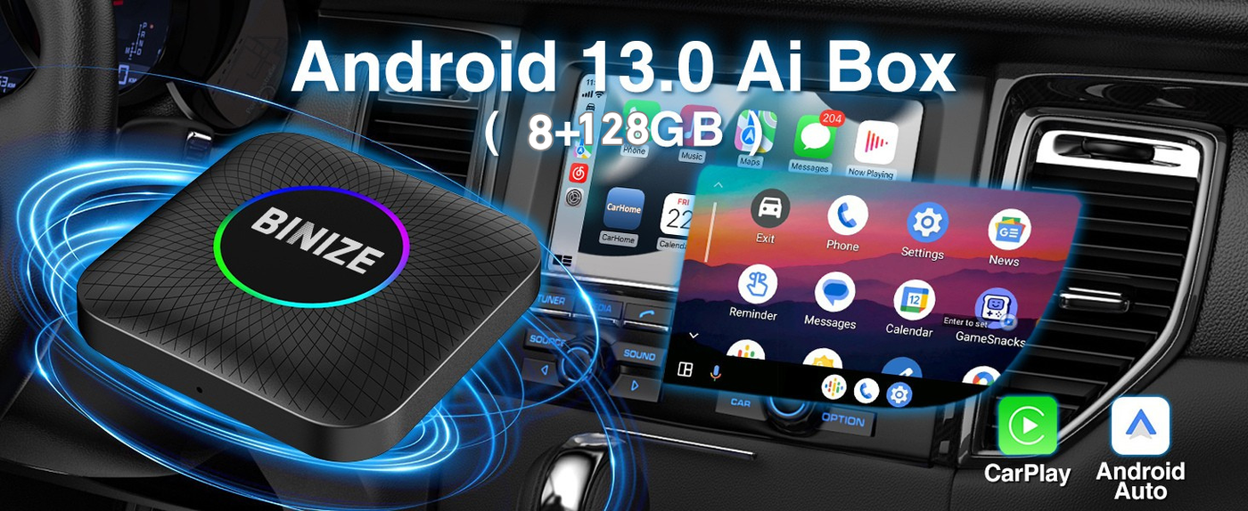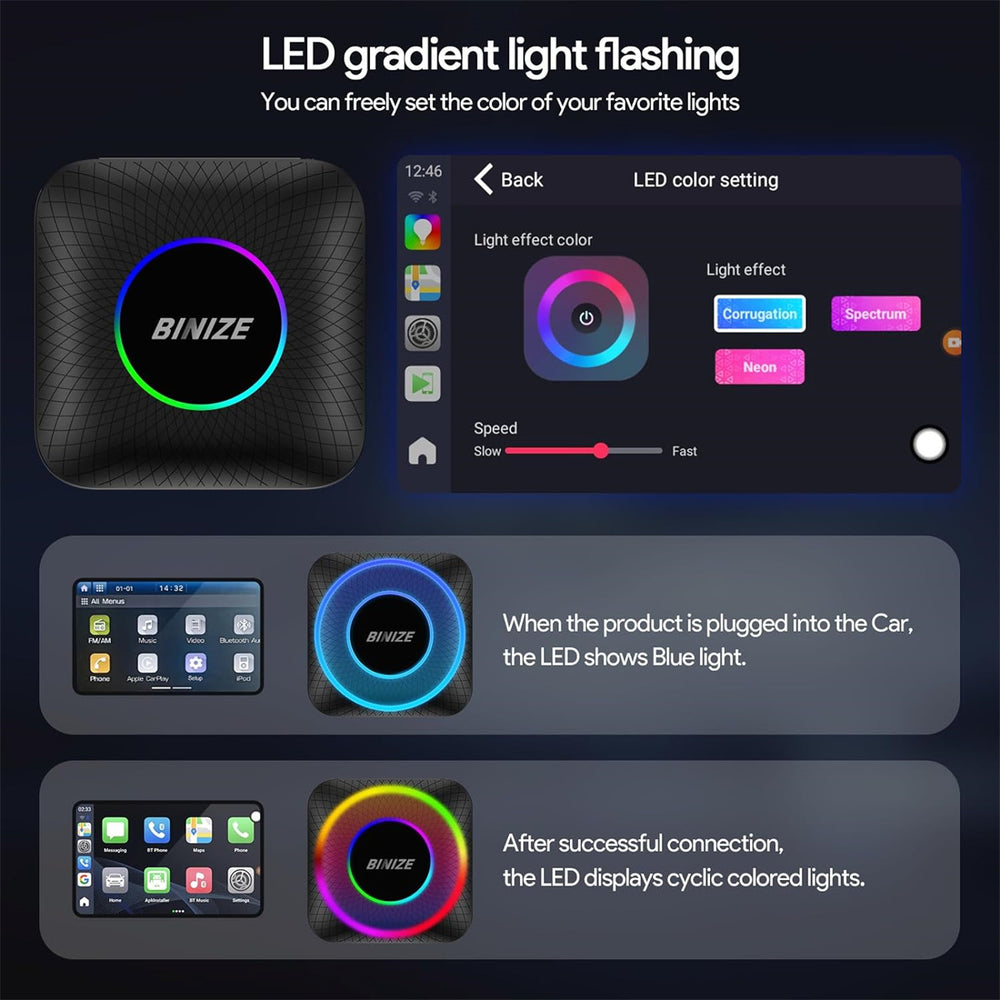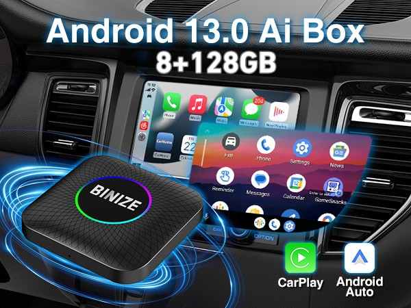 BINIZE Android 13 LED CarPlay AI BOX for OEM Car with Wired CarPlay/Android Auto