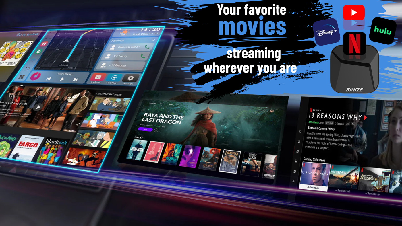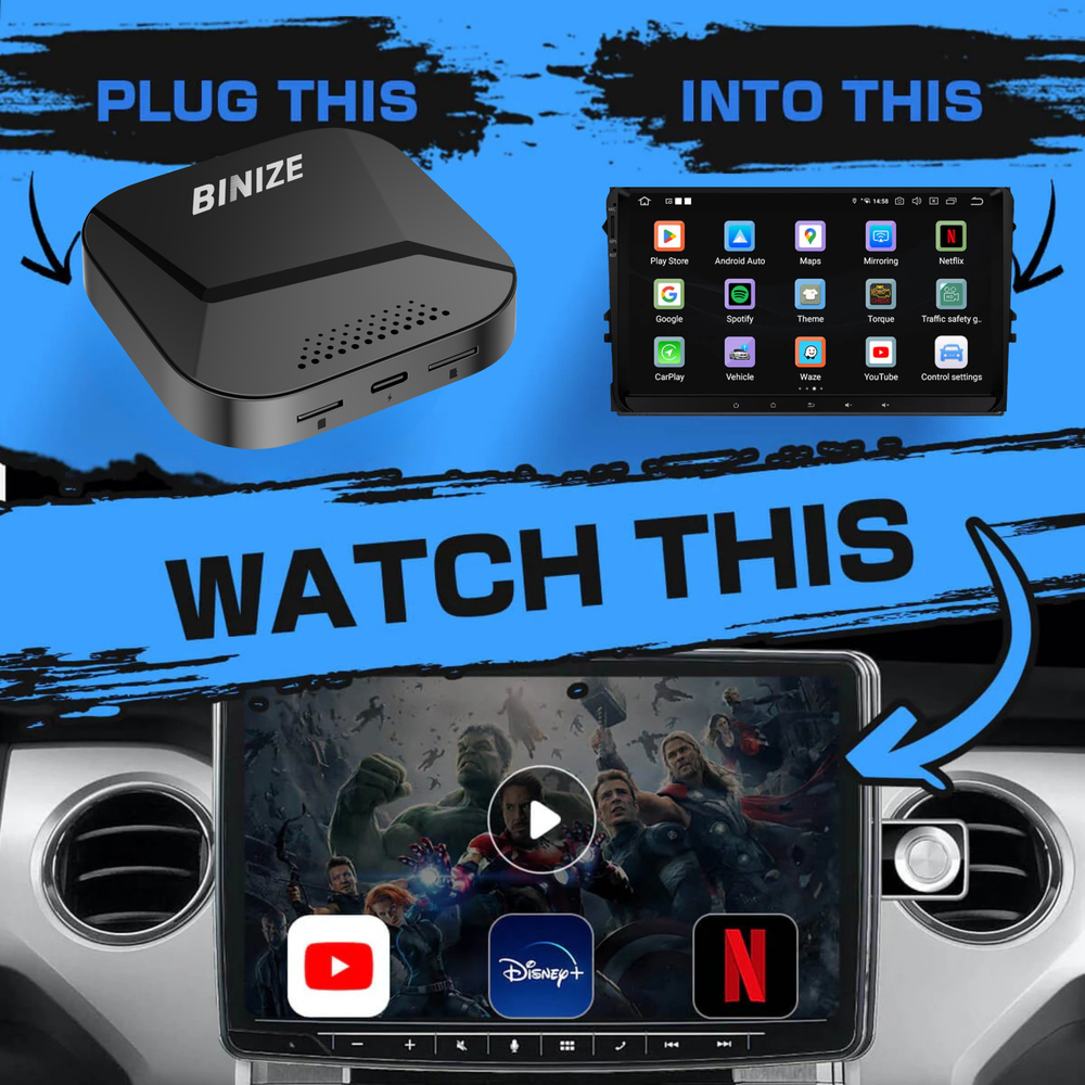Watch anything from your favorite streaming platform on your car's display screen. Connect The Binize B2 Pro to any CarPlay enabled device and instantly start enjoying it!