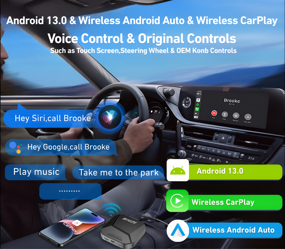 BINIZE B2 Android 13 CarPlay AI BOX for OEM Car with Wired CarPlay/Android Auto
