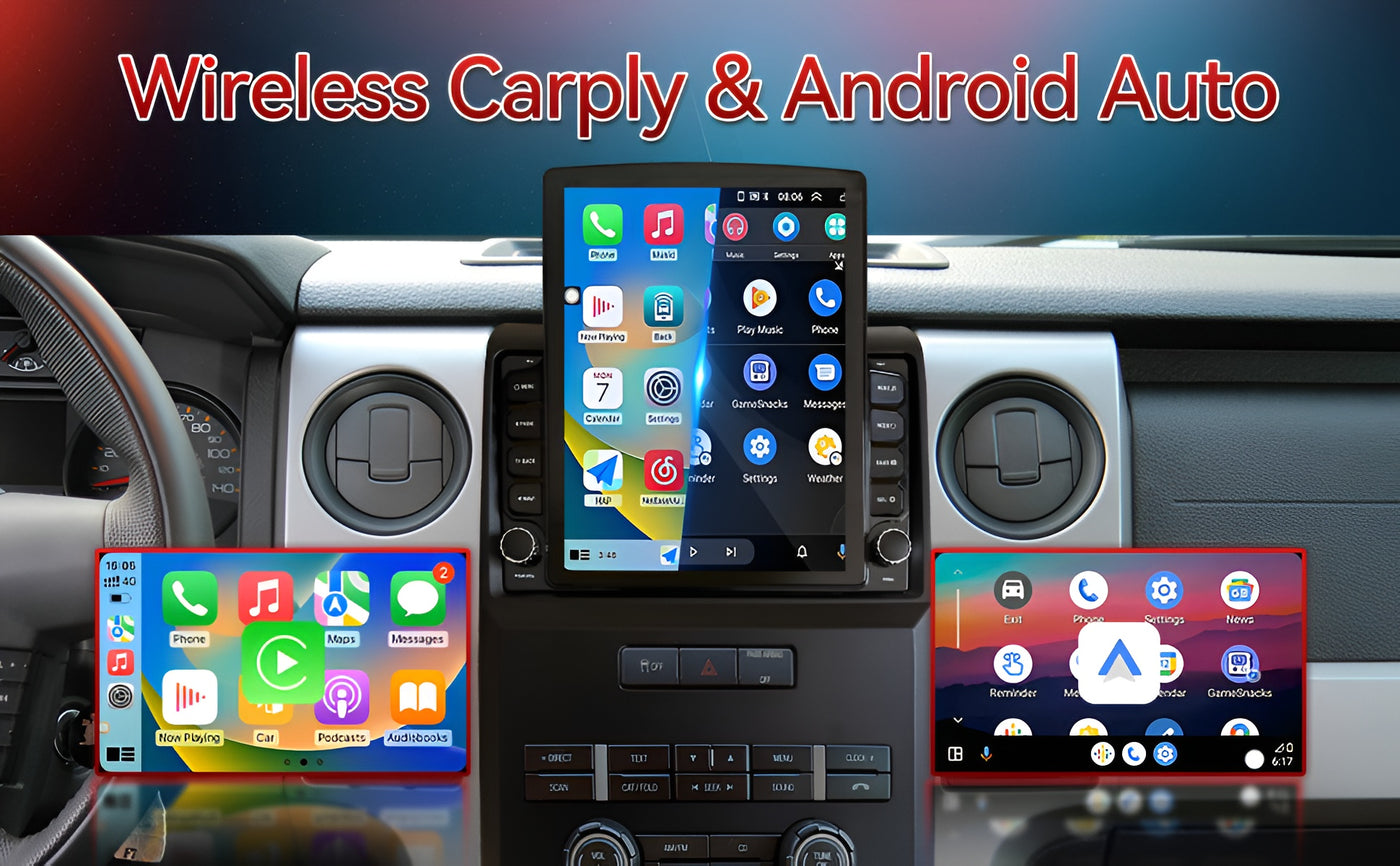 - 📱 Wireless CarPlay & Android Auto – Connect via Bluetooth & Wi-Fi