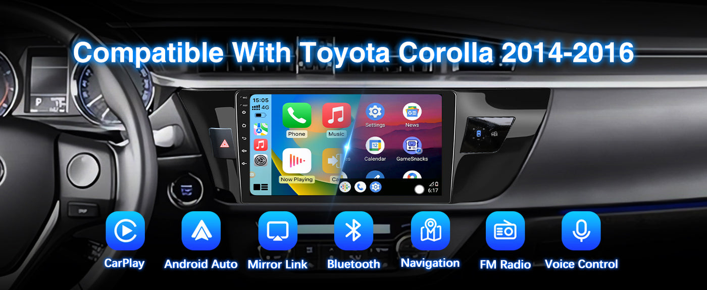- Seamless Integration Compatible with Toyota Corolla 2014-2016: Upgrade your Compatible with 2014-2016 Toyota Corolla's in-car entertainment experience with the BINIZE Android Car Stereo Radio. Designed for perfect compatibility, this unit seamlessly integrates into your vehicle's dashboard, enhancing both style and functionality.