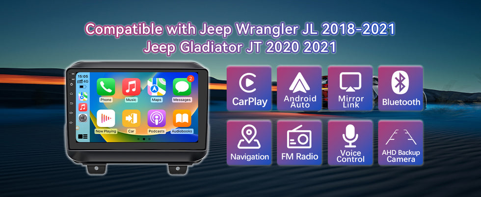 car stereo system, tailored exclusively Compatible with Jeep Wrangler JL (2018-2021) and Gladiator JT (2020-2021), boasts a user-centric interface and a streamlined installation process.