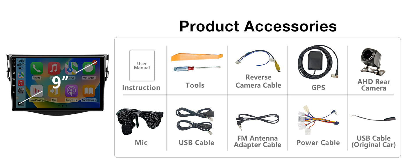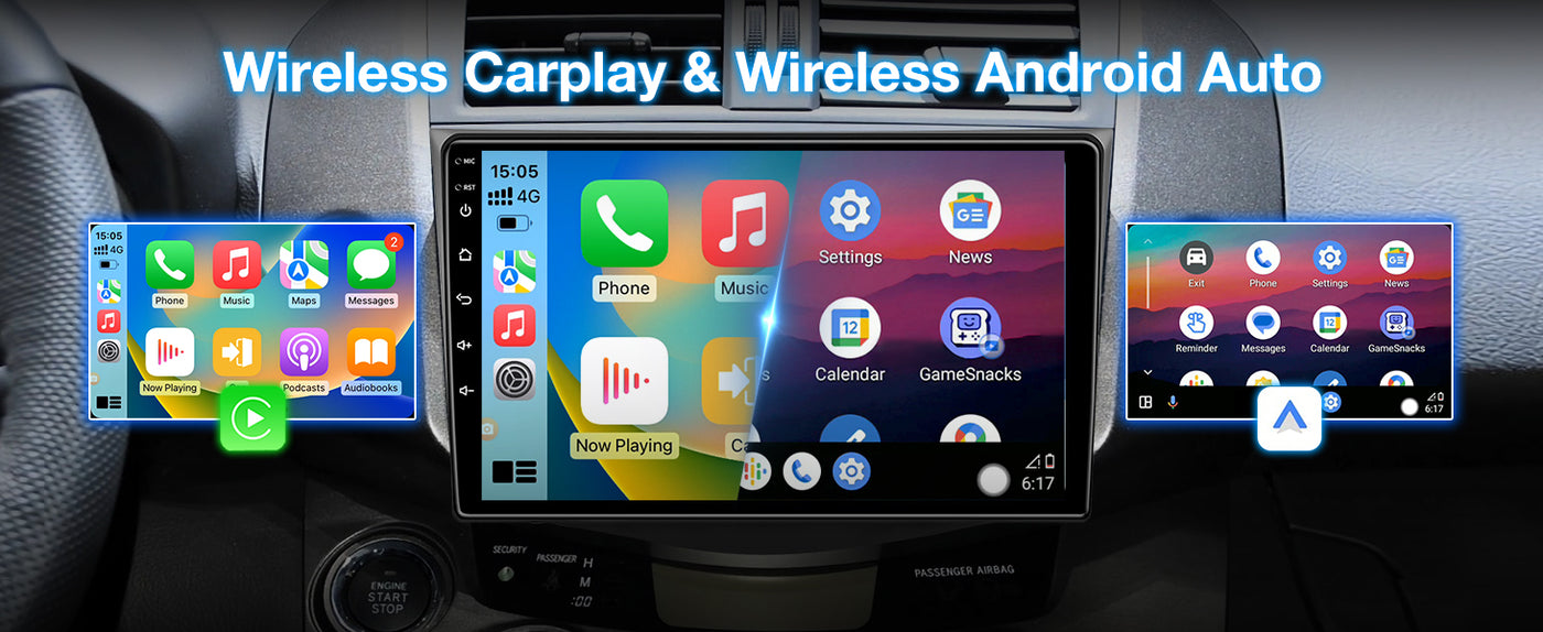 - Dual Wireless Connectivity: CarPlay & Android Auto: Stay connected and entertained on the go with built-in support for both CarPlay and Android Auto. Effortlessly access your favorite apps, maps, music, and more directly from your 9-inch touchscreen display, all while keeping your hands on the wheel and eyes on the road.
