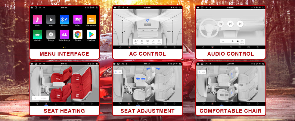 【Multi-function with Rear AC Control/Seat Heating/Fan Speed】This rear touchscreen integrates seamlessly with your original car's infotainment system and not only provides entertainment for rear seat passengers but also allows them to control various aspects of the car, such as AC control, rear seat temperature, seat heaters, audio volume control, the passenger' s seat control and even control the fan speed without distracting the driver.