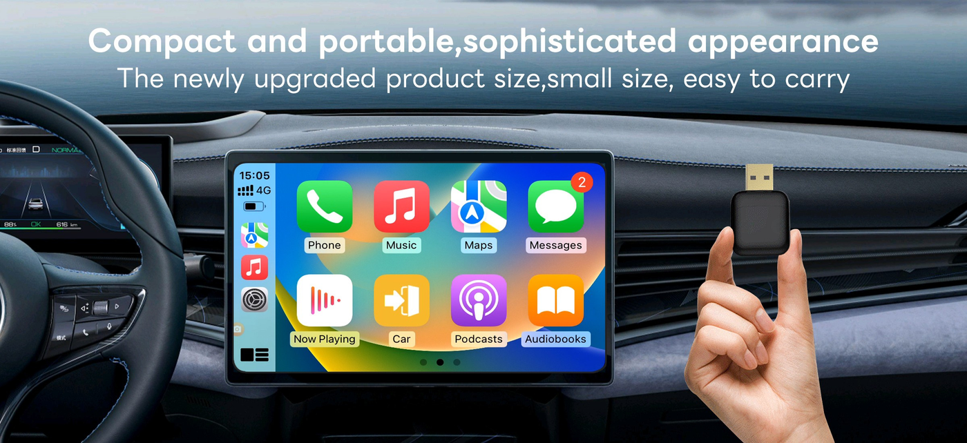 Our reliable wireless CarPlay adapter eliminates connection drops and delays. Experience quick responses, ultra-low latency, and steady performance while navigating or streaming. Stay focused on the road with stable, lag-free wireless CarPlay. - 【🧩 Ultra-Compact Design, Zero Clutter】