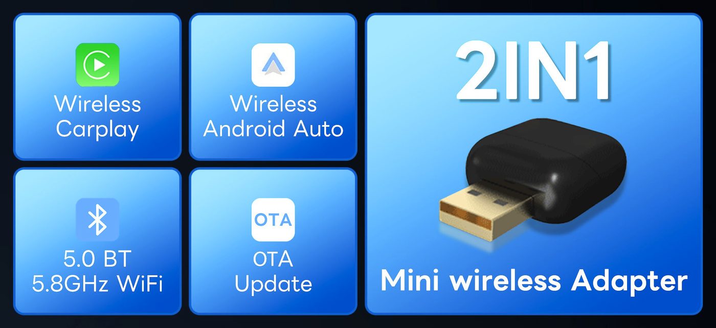 - 🚗 2-in-1 Wireless Adapter – Upgrade wired CarPlay & Android Auto to wireless in seconds.
