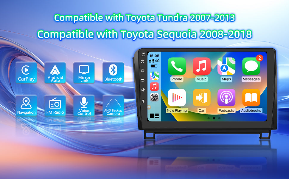 Car stereo compatible with Toyota Tundra 2007-2013.Toyota Sequoia 2008-2018.Please carefully check the shape of the vehicle model and center console.