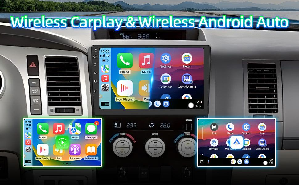 【Built-in Carplay/Android Auto】The radio supports wireless Carplay/Android auto, so you can connect to your smartphone and use some functions - make calls, use online maps, listen to music and access messages - which can improve driving safety.