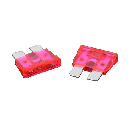 The blade fuse can be divided into: ultra-small blade fuse, small car fuse, medium car fuse, large car fuse. The rated current ranges from 1-40 amperes (A) to large 30-120 amperes (A), and the rated voltage is 32 volts (V).