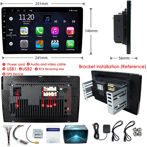 Binzie Android 10 Car Radio with Apple Carplay and Android Auto, 10 Inch Touch Screen Double Din Multimedia ,AM,FM,RDS,DSP,GPS Navigation,Bluetooth,Wifi,Backup Camera Input,Mirror Link