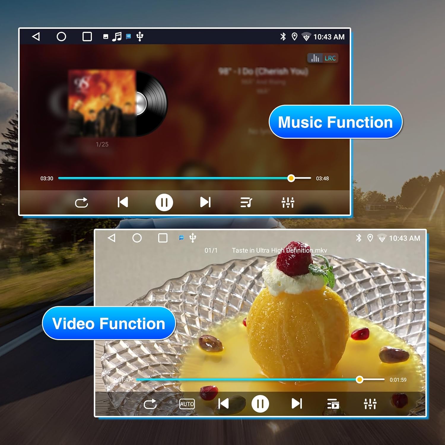Enjoy a vivid 10.1" IPS capacitive touchscreen (1024×600 resolution) for an enhanced entertainment experience. Powered by a Quad-Core processor with 2GB RAM + 32GB ROM, ensuring smooth performance and plenty of storage for apps and media.