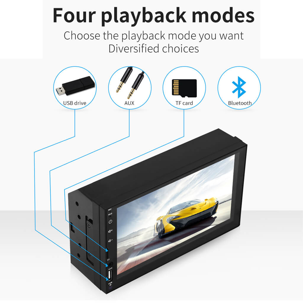 【7 Inch Touch Screen Stereo】This head unit is a universal 7-inch 2din car stereo,178mm*103mm, standard harness, easy to install.1024*600 screen resolution, support phone online navigation,seven-color key backlights adjustable, Please confirm whether it matches the installation slot of your car before buying.