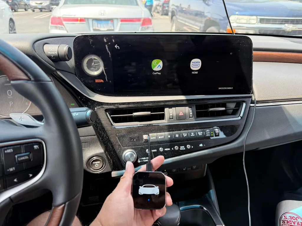 - Carplay HDMI Streaming Without Compromise: Enjoy uninterrupted entertainment and navigation. Instantly switch between streaming (Video/Gaming) and CarPlay via one-touch control. CarPlay stays active in background for calls/maps, while HDMI delivers crisp 60Hz visuals.