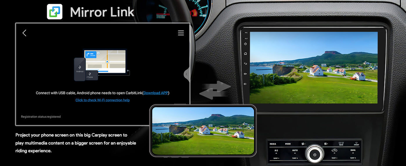 - 🔗 Mirror Link (Android / iOS) — View videos, maps, and apps directly on the car screen.