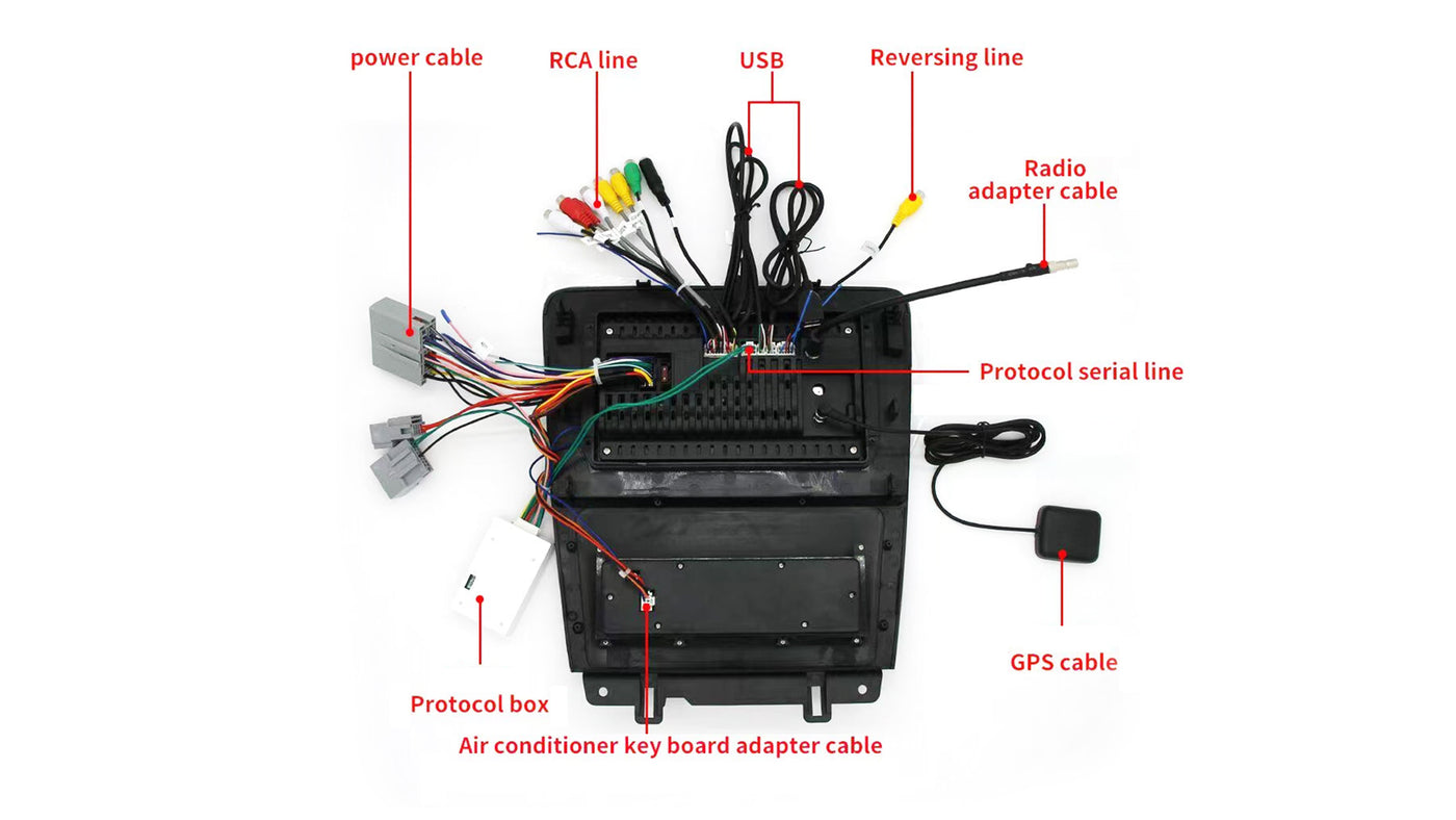 Not at all. It’s plug-and-play with special connectors — no cutting or wire modification required. All necessary cables and a rear camera are included.