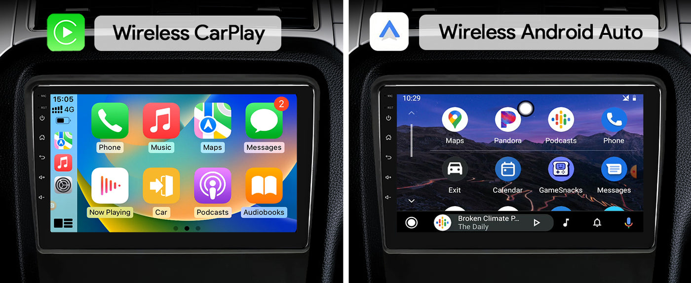 Yes ✅ It supports both Wireless & Wired CarPlay and Android Auto, allowing you to use navigation, music, calls, and messages hands-free.