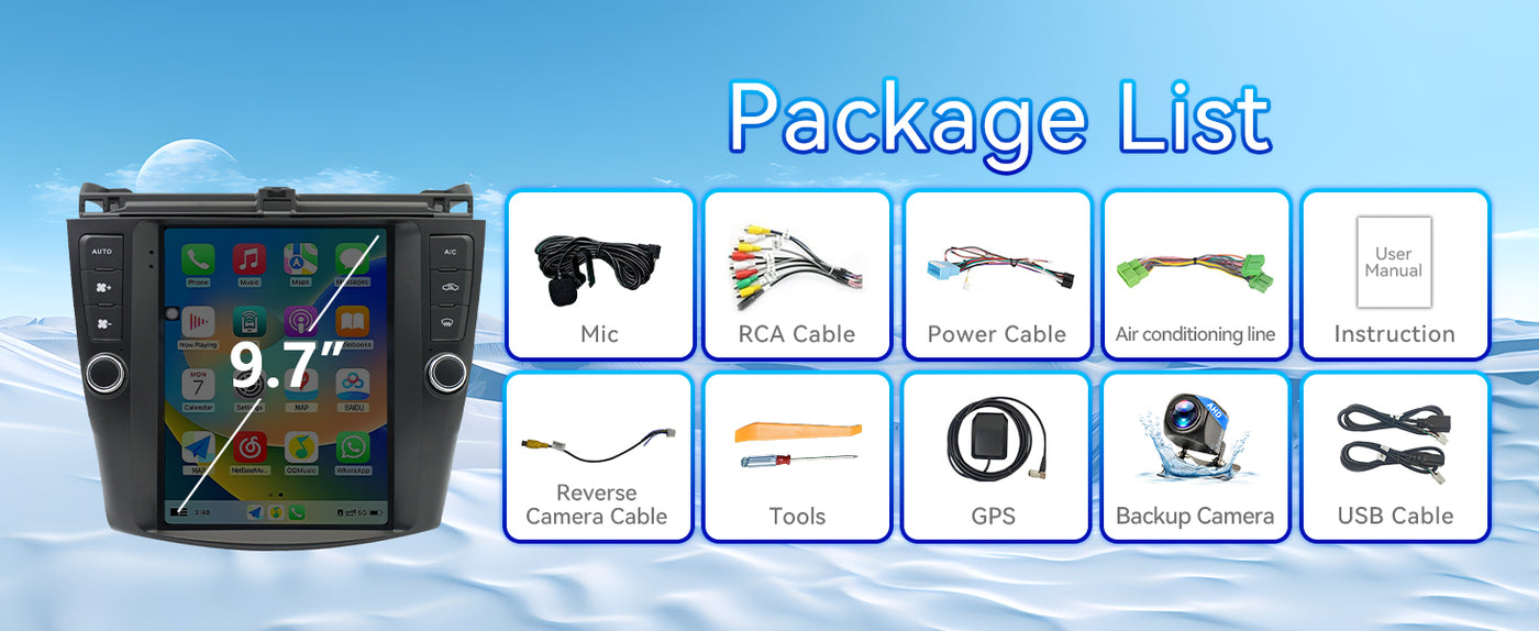 Seamless Integration Compatible with Honda Accord 2003-2007: Upgrade your Compatible with 2003-2007 Honda Accord's in-car entertainment experience with the BINIZE Android Car Stereo Radio. Designed for perfect compatibility, this unit seamlessly integrates into your vehicle's dashboard, enhancing both style and functionality.Wireless CarPlay & Android Auto: Enjoy the convenience of hands-free control with built-in support for both CarPlay and Android Auto. Wirelessly connect your smartphone to access your favorite apps, maps, music, and more on the go, all through the 9.7-inch high-resolution touchscreen.Comprehensive Navigation & Connectivity: Equipped with GPS navigation, Bluetooth for hands-free calling and music streaming, WiFi for internet access, and FM radio, this car stereo keeps you connected and on track. Stay entertained and informed with ease, wherever your journey takes you.MirrorLink Technology for Enhanced Compatibility: Take advantage of MirrorLink, which allows you to mirror your smartphone's screen directly onto the 9.7-inch display. This feature enhances compatibility with a wide range of devices, ensuring a seamless and intuitive user experience.Safety-Enhancing Backup Camera Ready: Keep your family and vehicle safe with the included backup camera input. Easily connect a compatible rearview camera to the stereo, providing a clear view of what's behind you when reversing. This feature is invaluable for navigating tight spaces and avoiding obstacles.