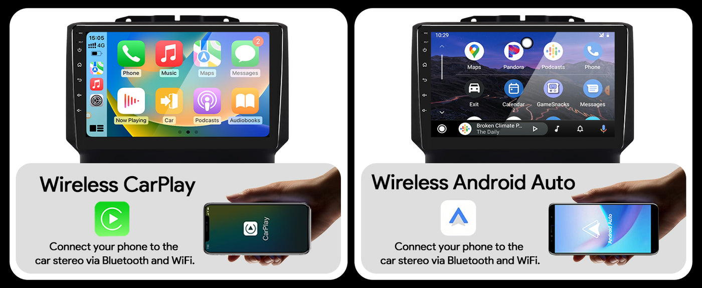 - 【Wireless CarPlay / Android Auto / Mirror Link】Streamline your life on the go with hands-free control of your favorite apps! Our car stereo is compatible with both wireless CarPlay and Android Auto, so you can easily access apps and more without ever having to pick up your phone.