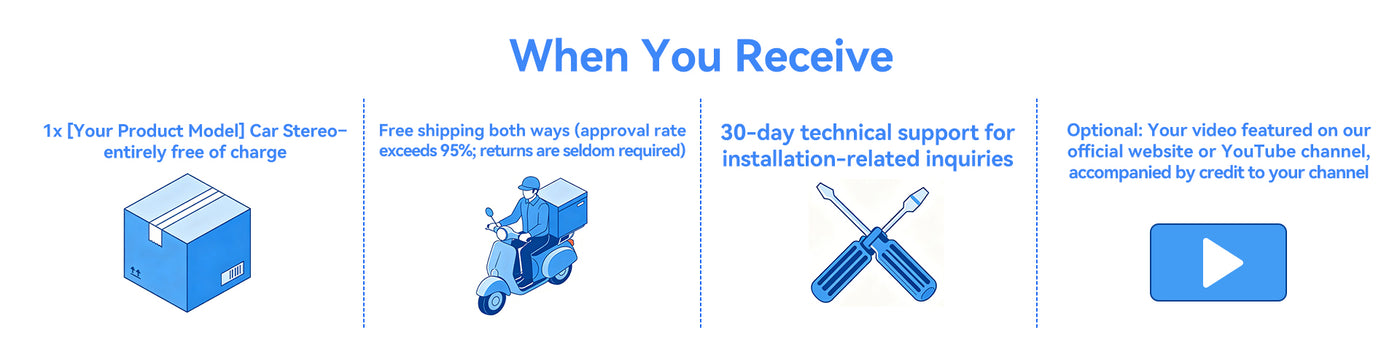 We are actively seeking qualified installers to evaluate our car stereo system. In exchange for an authentic, unscripted installation video, the unit is provided at no cost to you.