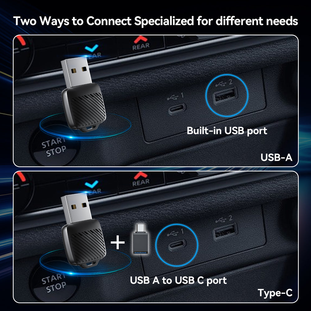 Say goodbye to tangled cables and bulky setups! This thumb-sized adapter fits seamlessly into your car’s USB or USB-C port, keeping your interior clean, minimalist, and professional-looking. - 【 Wide Compatibility】