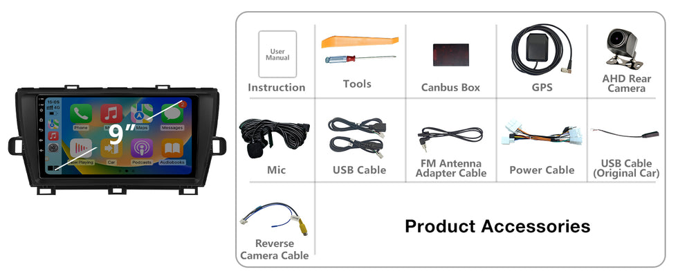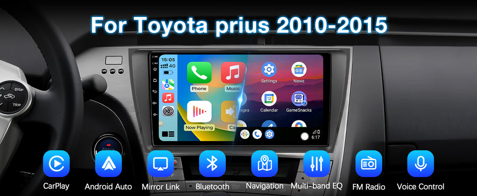9 Inch Android Car Stereo for 2010-2015 Toyota Prius with wireless CarPlay/Android Auto