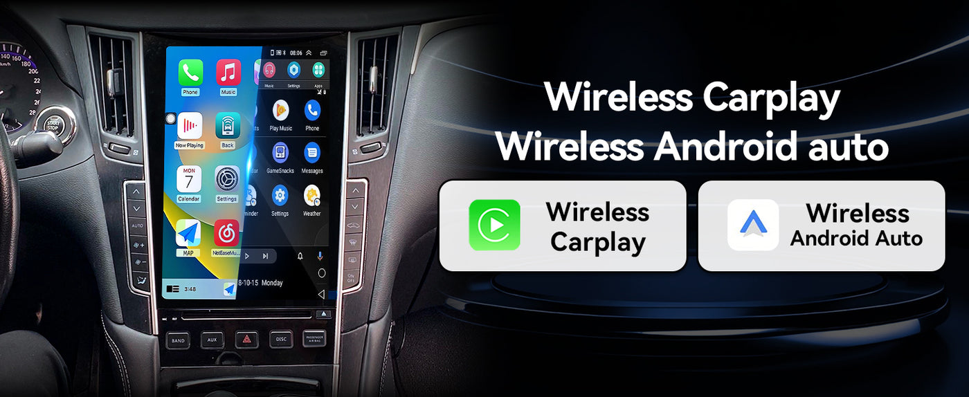 Experience a direct-fit stereo replacement compatible with Infiniti Q50 2015-2019 models. This modern android car stereo delivers wireless CarPlay and Android Auto, turning your car play screen into a command center.