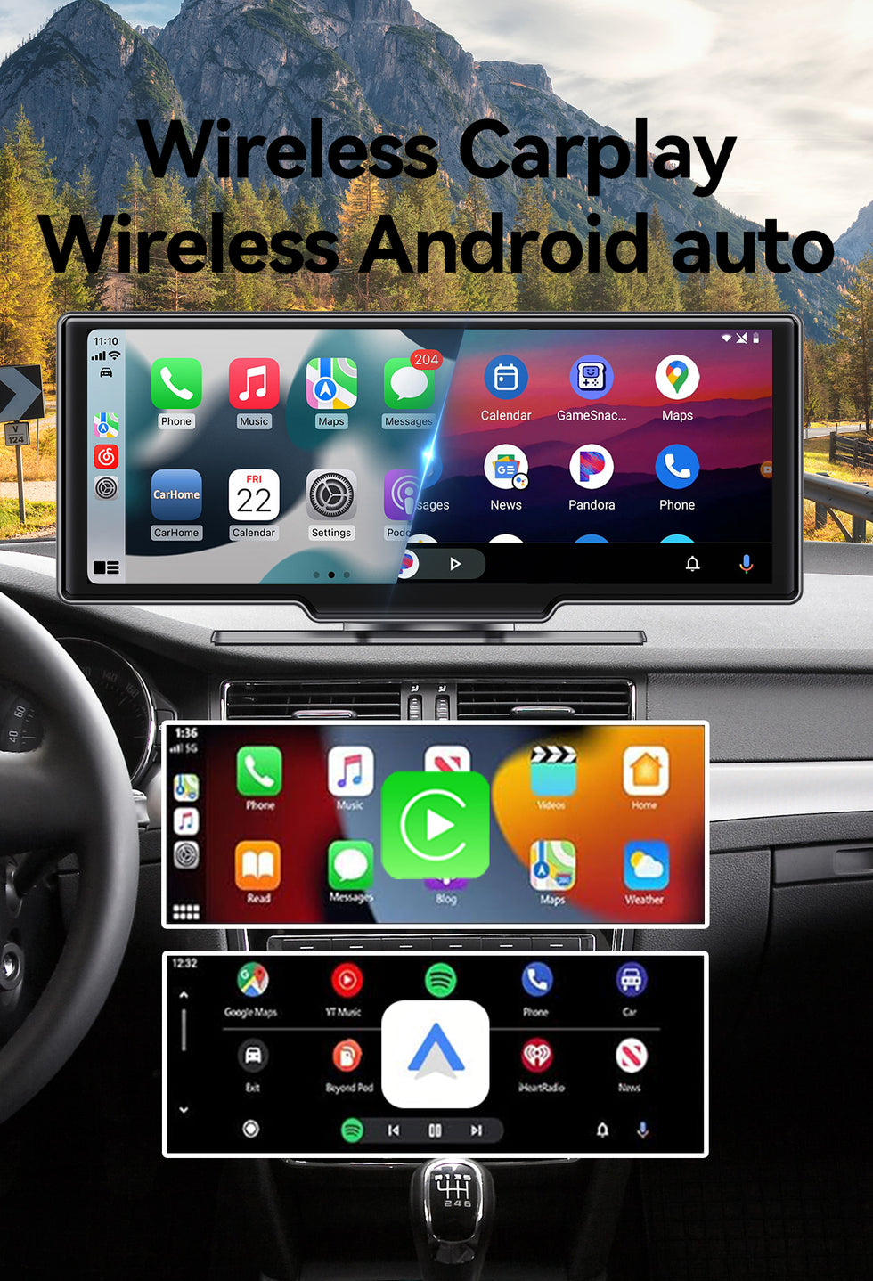 - 🚗 Wireless CarPlay & Android Auto – Hands-free calls & music.
