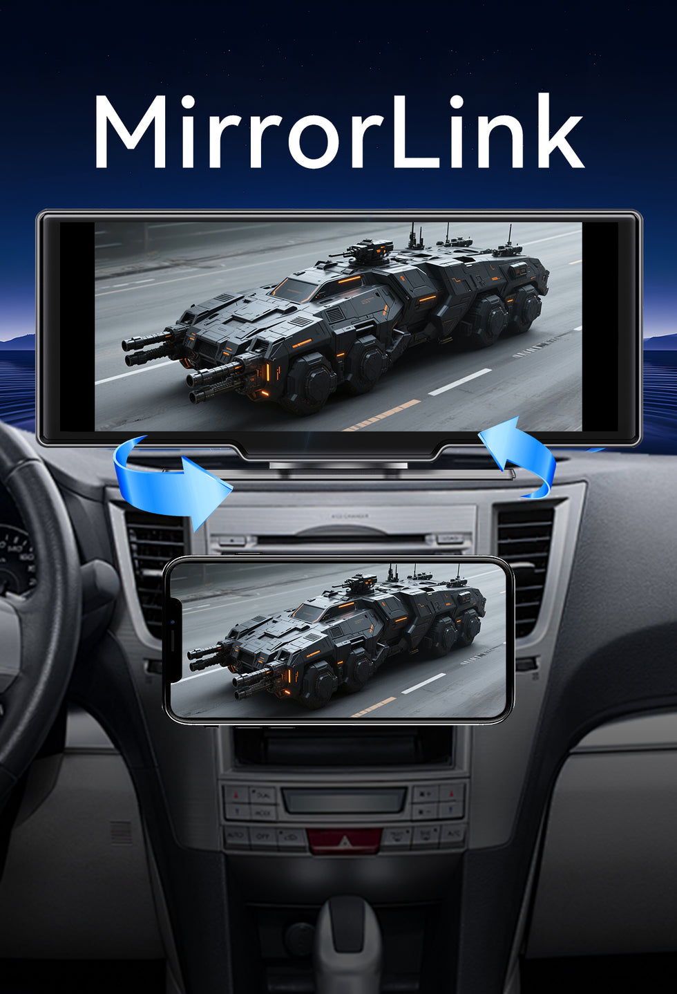 - 📱 8.1'' HD Touchscreen – Full-screen phone sync & 1080P videos.