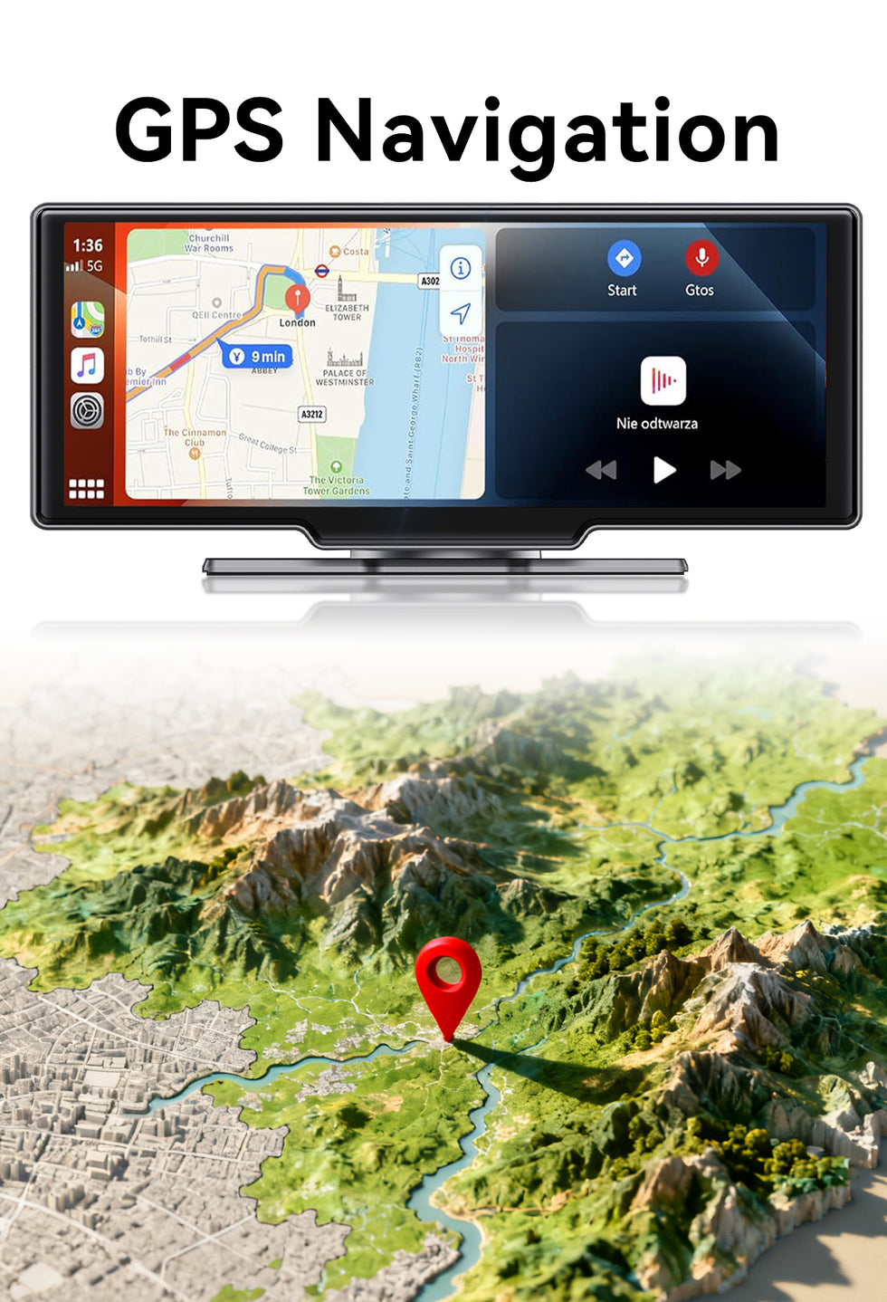 - 【Real-time GPS Navigation】 Portable CarPlay screen provides accurate real-time positioning with GPS navigation. Display real-time maps in widescreen format. Supports popular apps like Google Maps and Waze for safe and precise navigation.